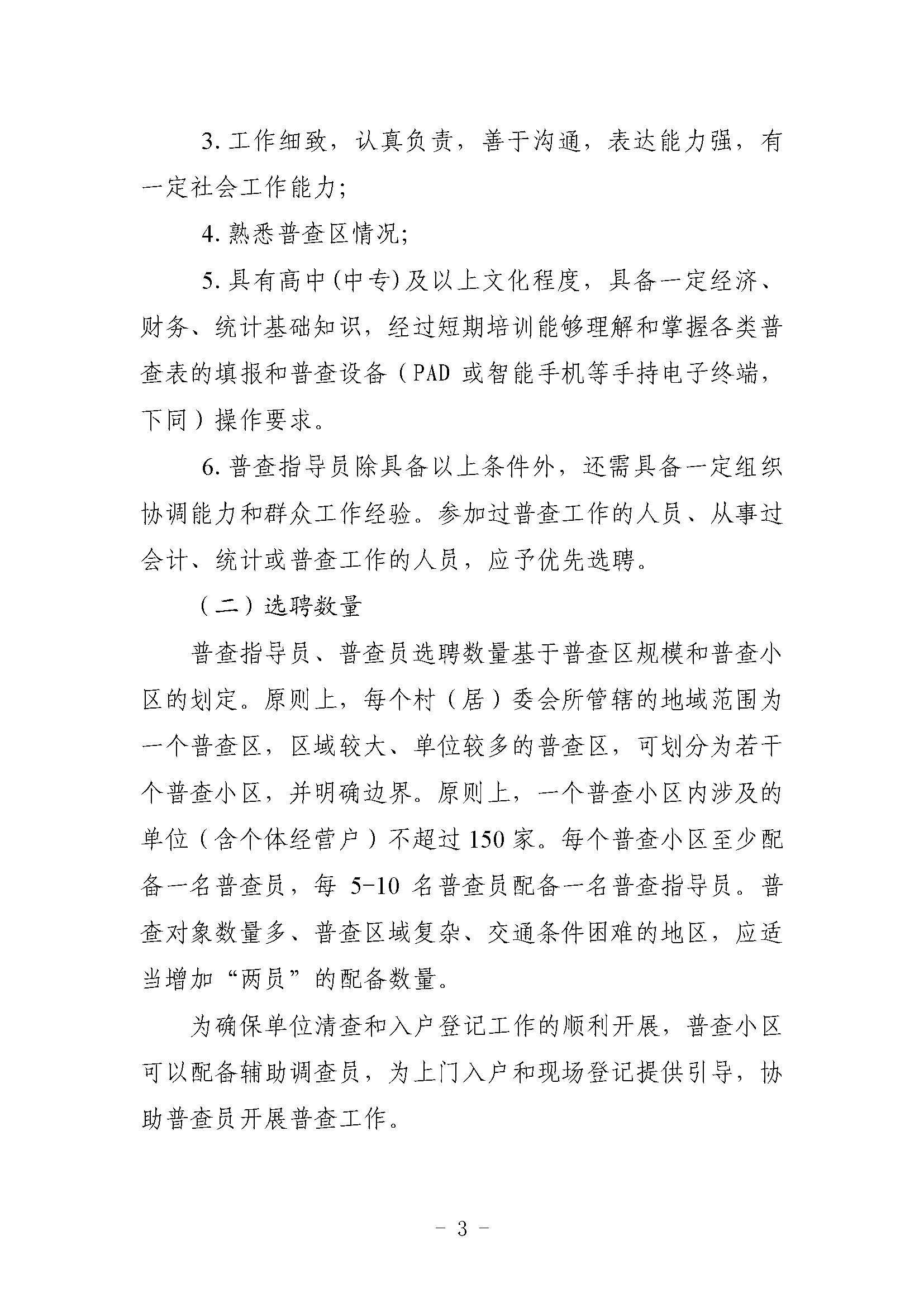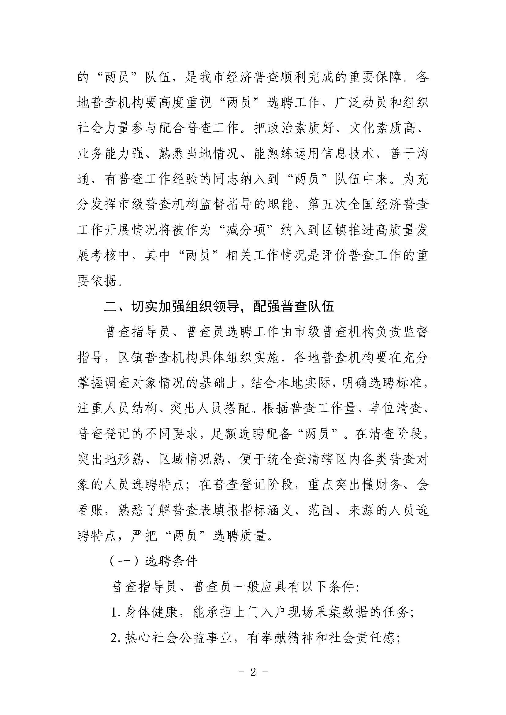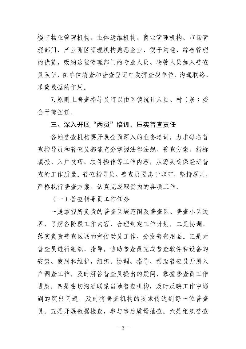 關(guān)于認真做好第五次全國經(jīng)濟普查普查指導員、普查員選聘和管理工作的通知