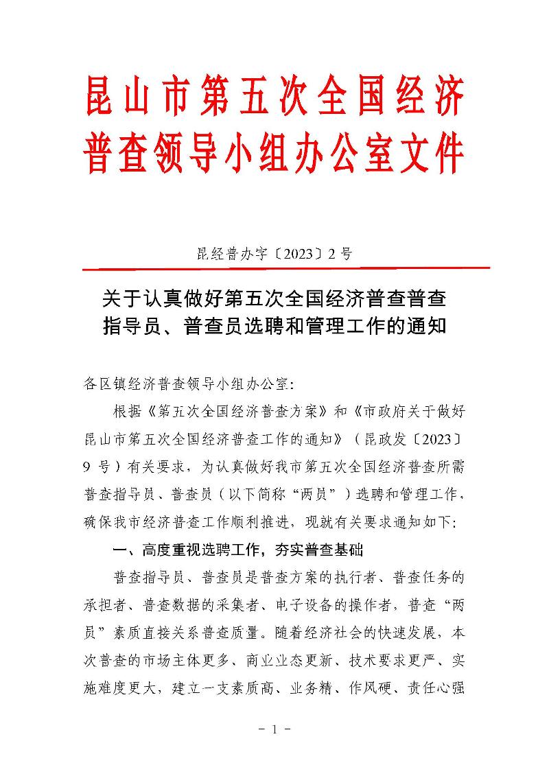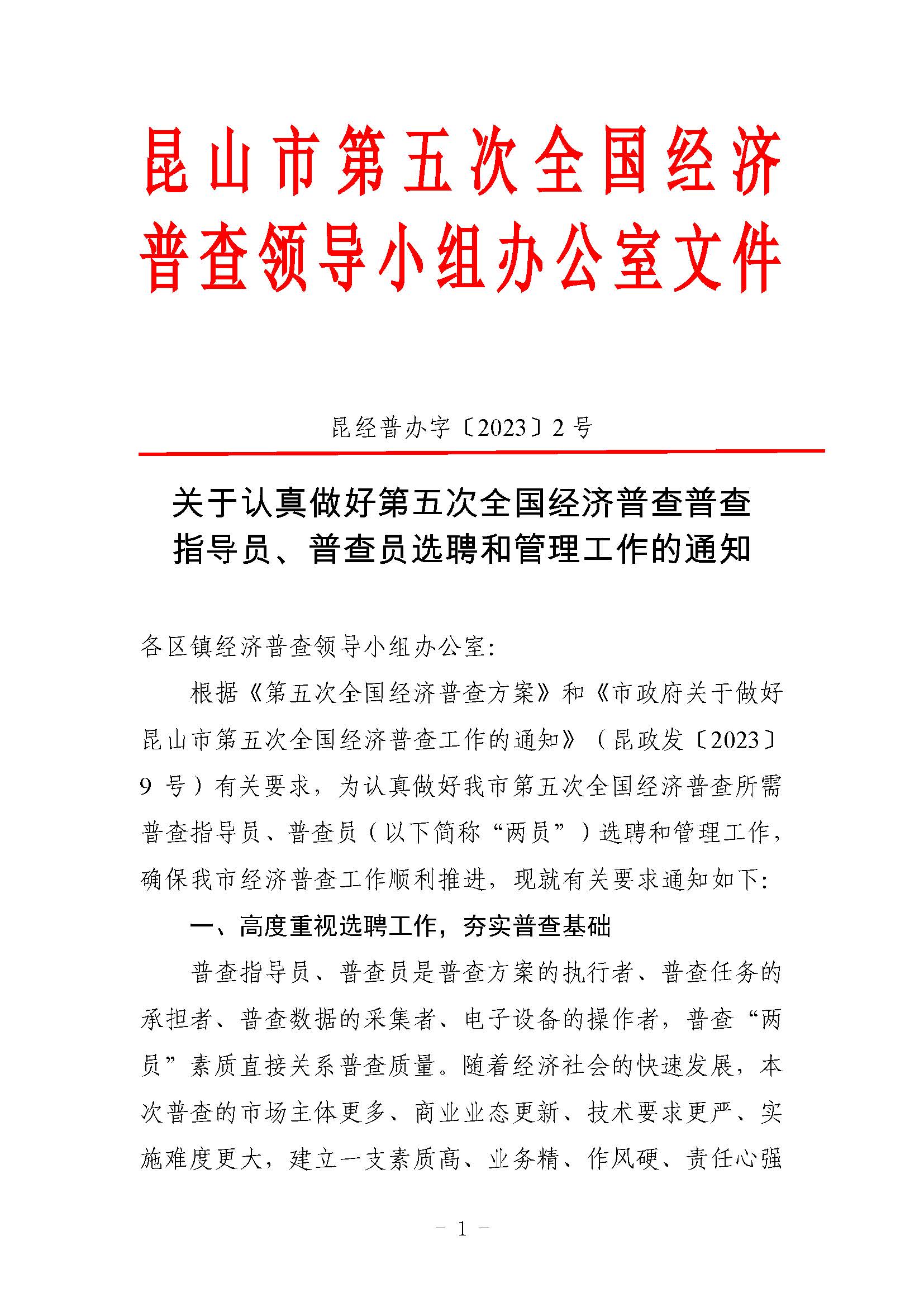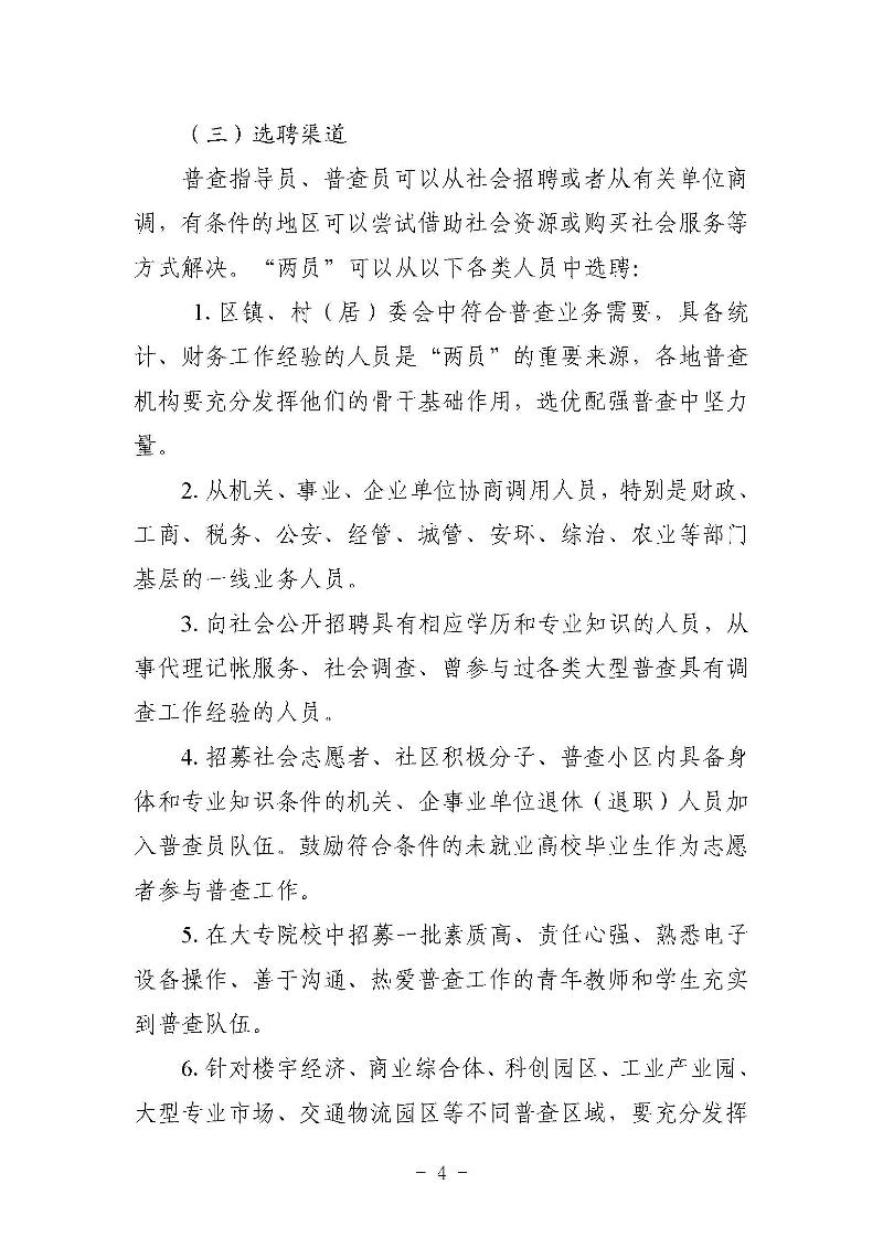 關(guān)于認真做好第五次全國經(jīng)濟普查普查指導員、普查員選聘和管理工作的通知