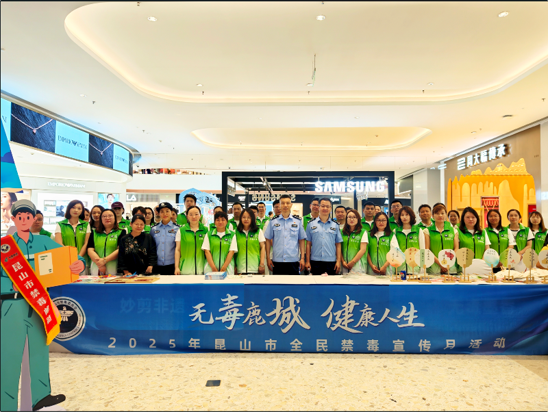 在“無毒鹿城、健康人生”2025年昆山市全民禁毒集中宣傳活動現(xiàn)場上,市禁毒辦聯(lián)合檢察、司法、郵管等部門,通過設(shè)立禁毒特色剪紙、漆扇禁毒書畫、仿真毒品模型展示等主題攤位以及現(xiàn)場互動體驗(yàn)的形式,面向群眾科學(xué)普及禁毒知識,廣泛傳播“健康人生、綠色無毒”理念。