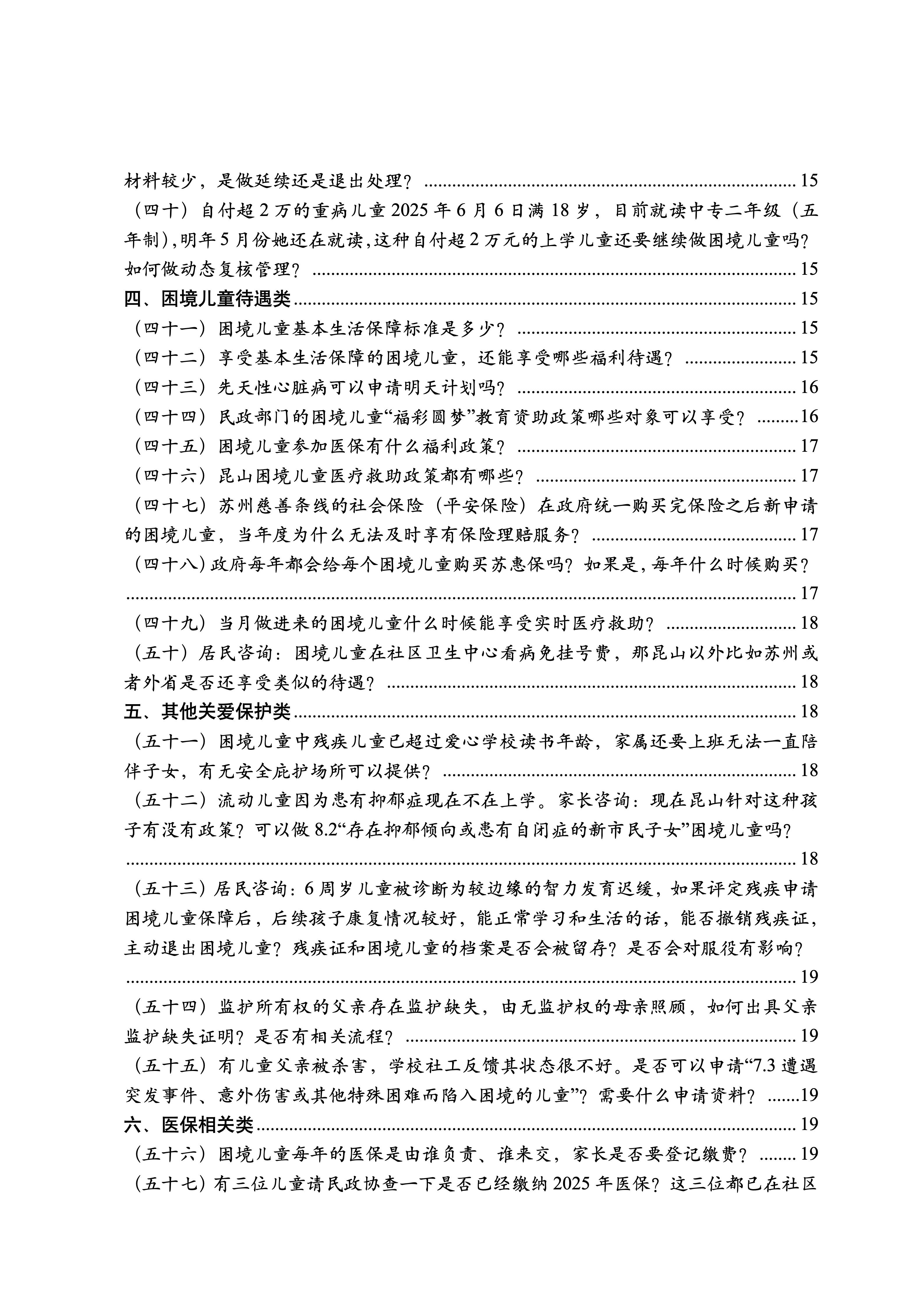 基層工作千頭萬緒,現實環境下的復雜問題層出不窮,為保障兒童和殘疾人等特殊弱勢群體的基本權益,輔助基層應對各類卡點、痛點和難點問題,市民政局結合換位跑工作要求,開發“兒童與殘疾人福利政策百問百答”線上即時回應表單,在兒童主任基礎輪訓工作中捕捉基層普遍困惑,匯集重點相關部門的福利政策,研發制作《昆山市2025年兒童福利政策百問百答》《昆山市2025年殘疾人福利政策百問百答》。