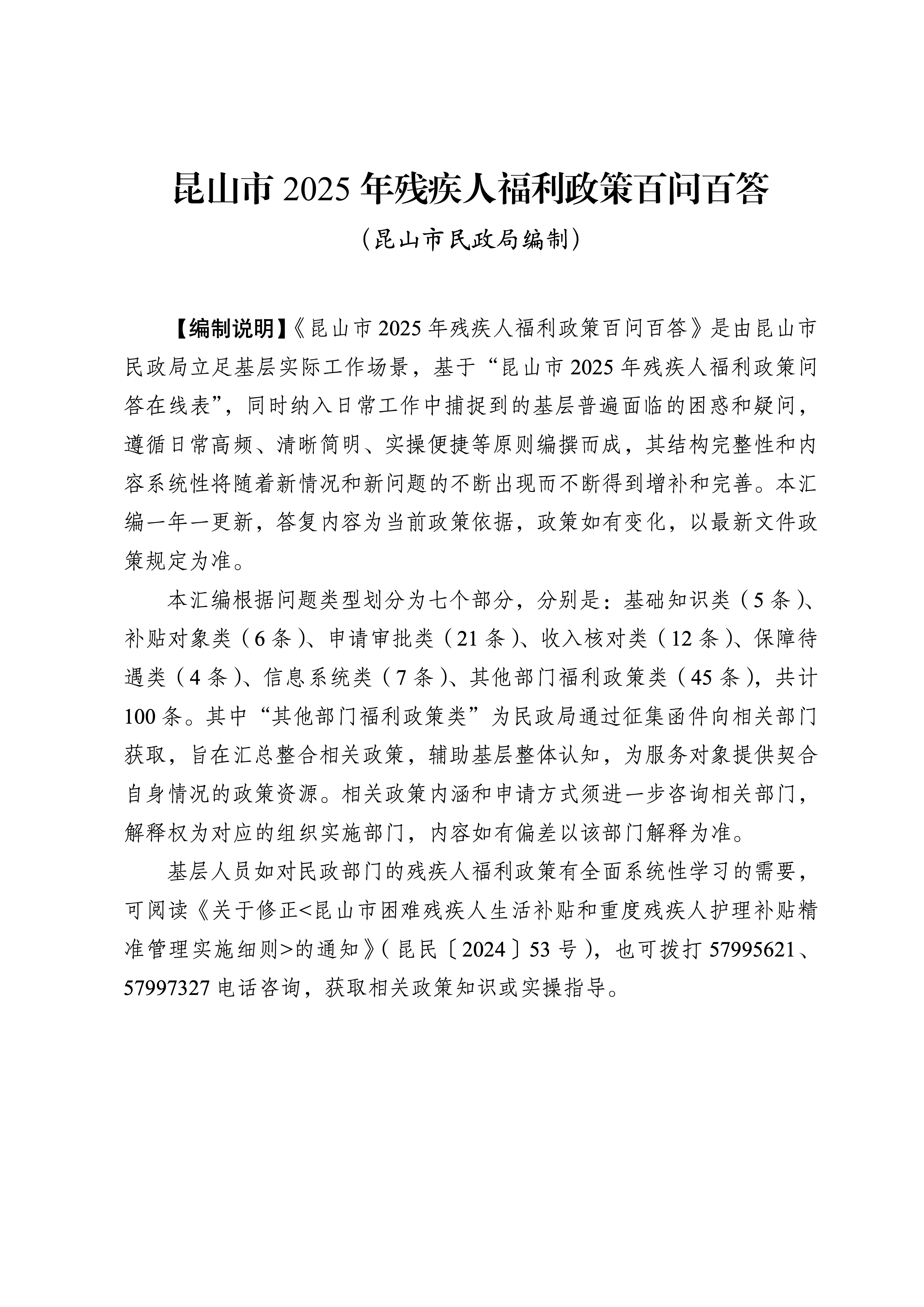 昆山市2025年殘疾人福利政策百問百答
