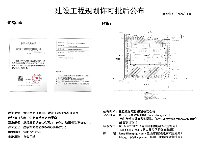 振華集團(昆山)建設工程股份有限公司信息大樓市政后配套建設工程規(guī)劃許可批后公布