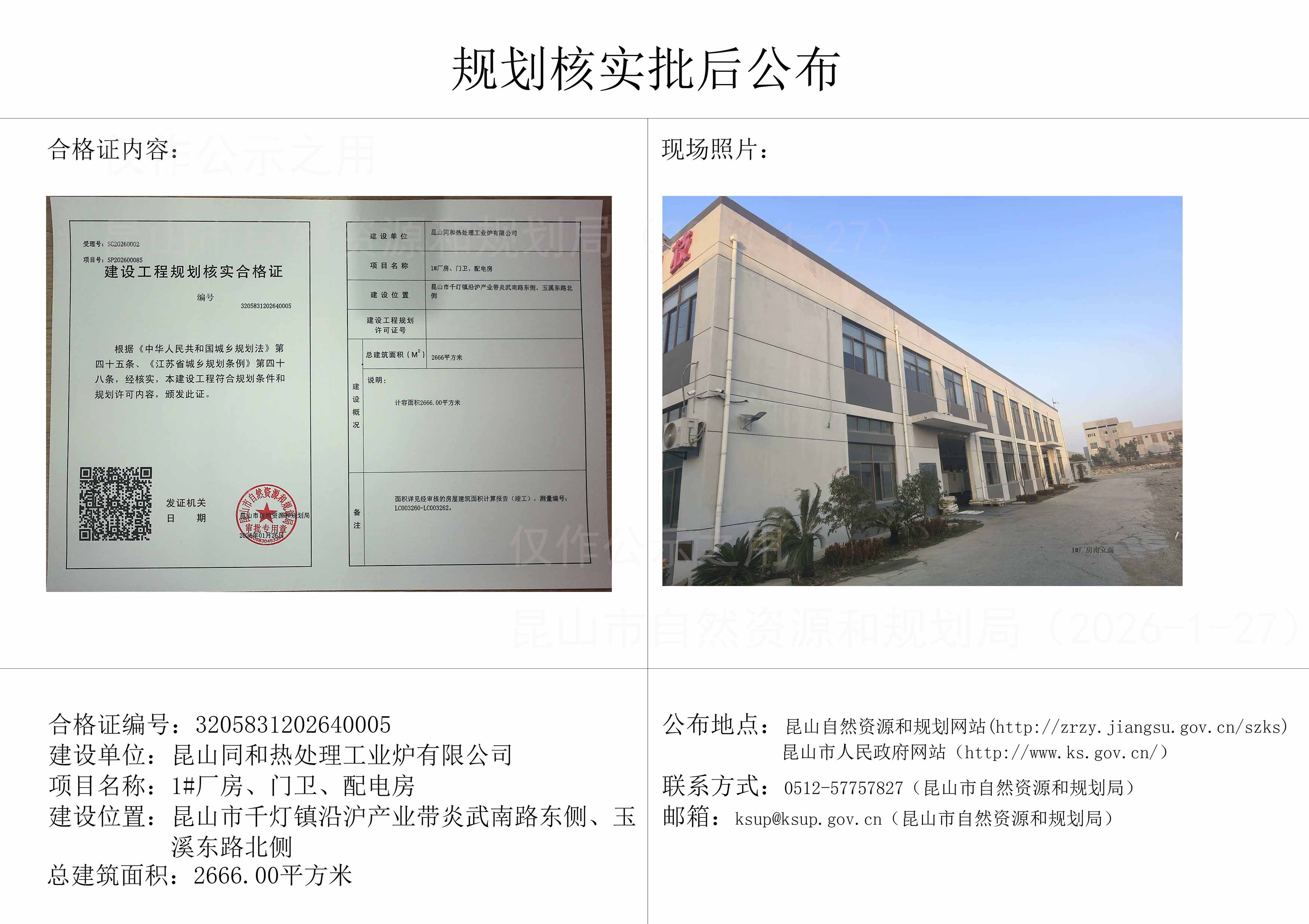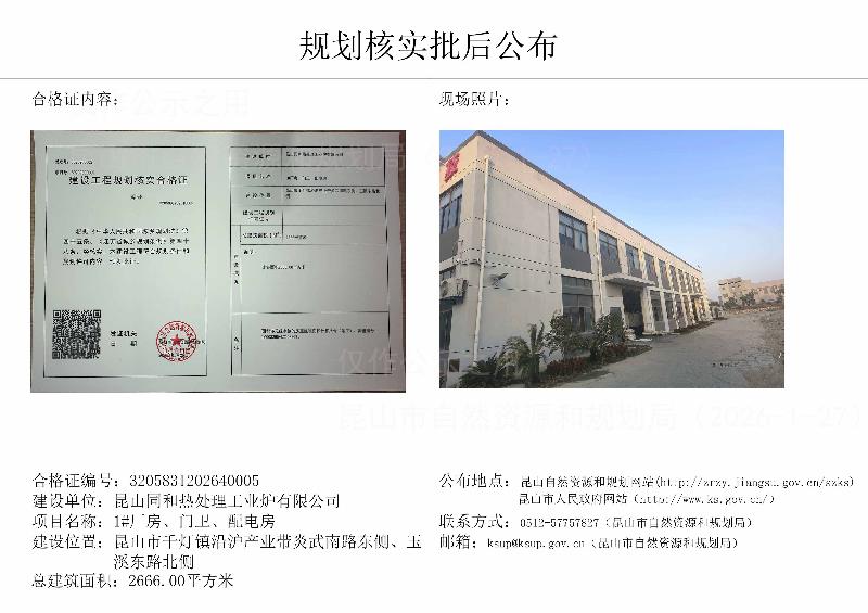 昆山同和熱處理工業(yè)爐有限公司1#廠房、門衛(wèi)、配電房規(guī)劃核實(shí)批后公布