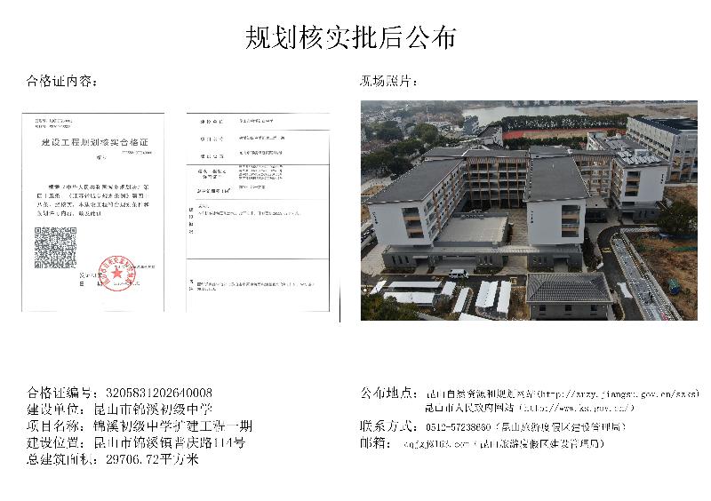 錦溪初級中學(xué)擴建工程一期規(guī)劃核實的批后公布