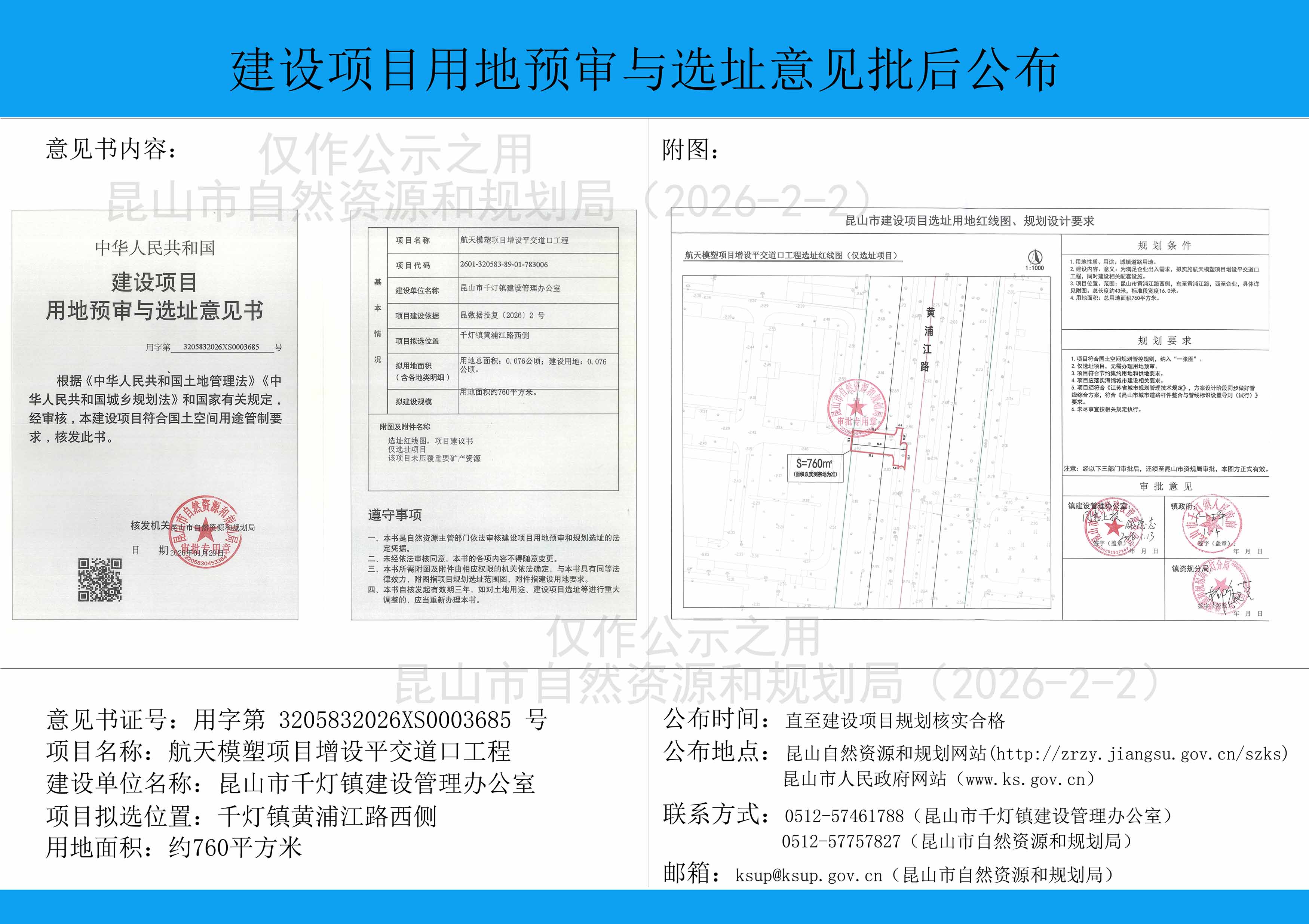 航天模塑項目增設平交道口工程建設項目用地預審與選址意見批后公布