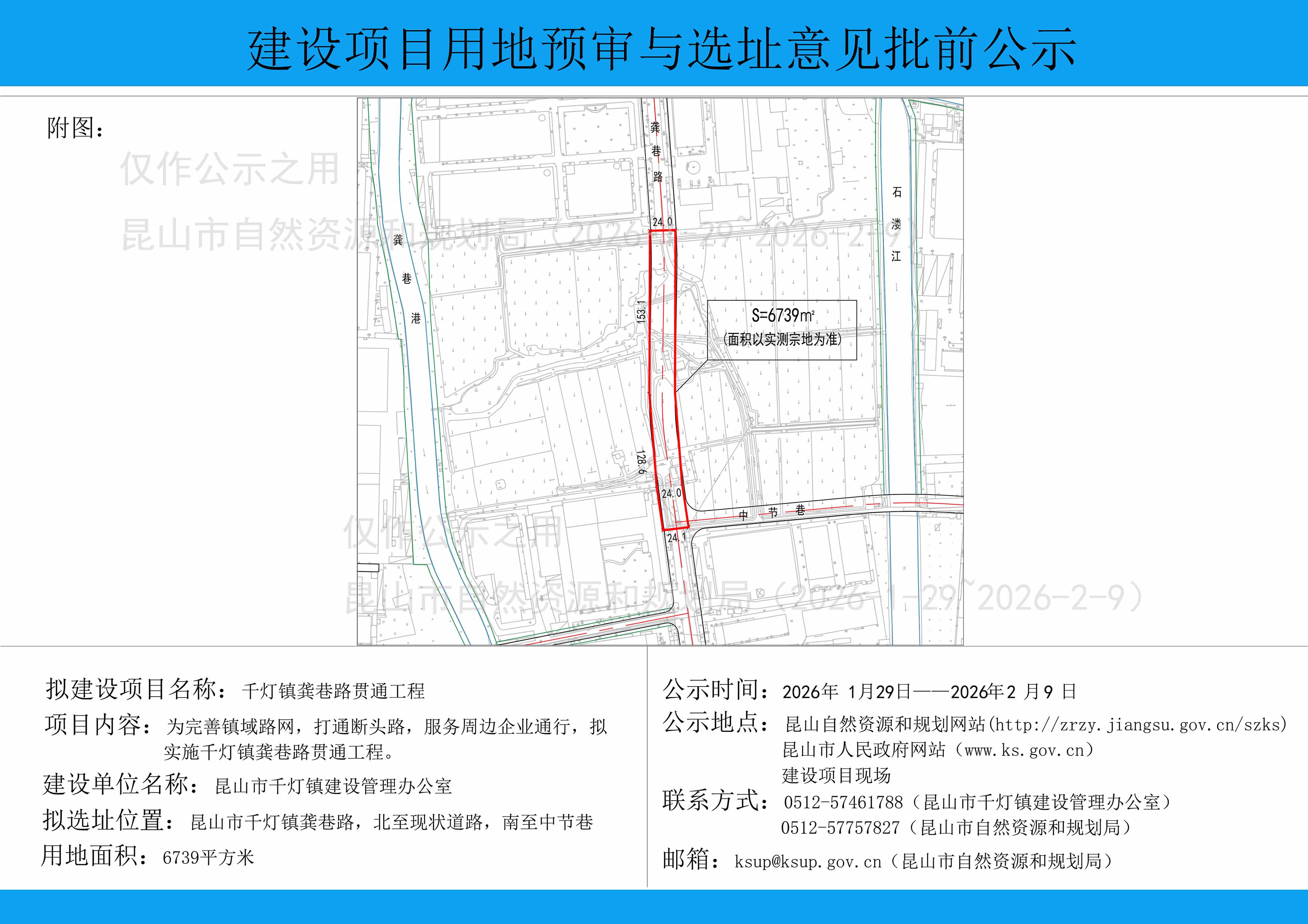 千燈鎮龔巷路貫通工程建設項目用地預審與選址意見批前公示