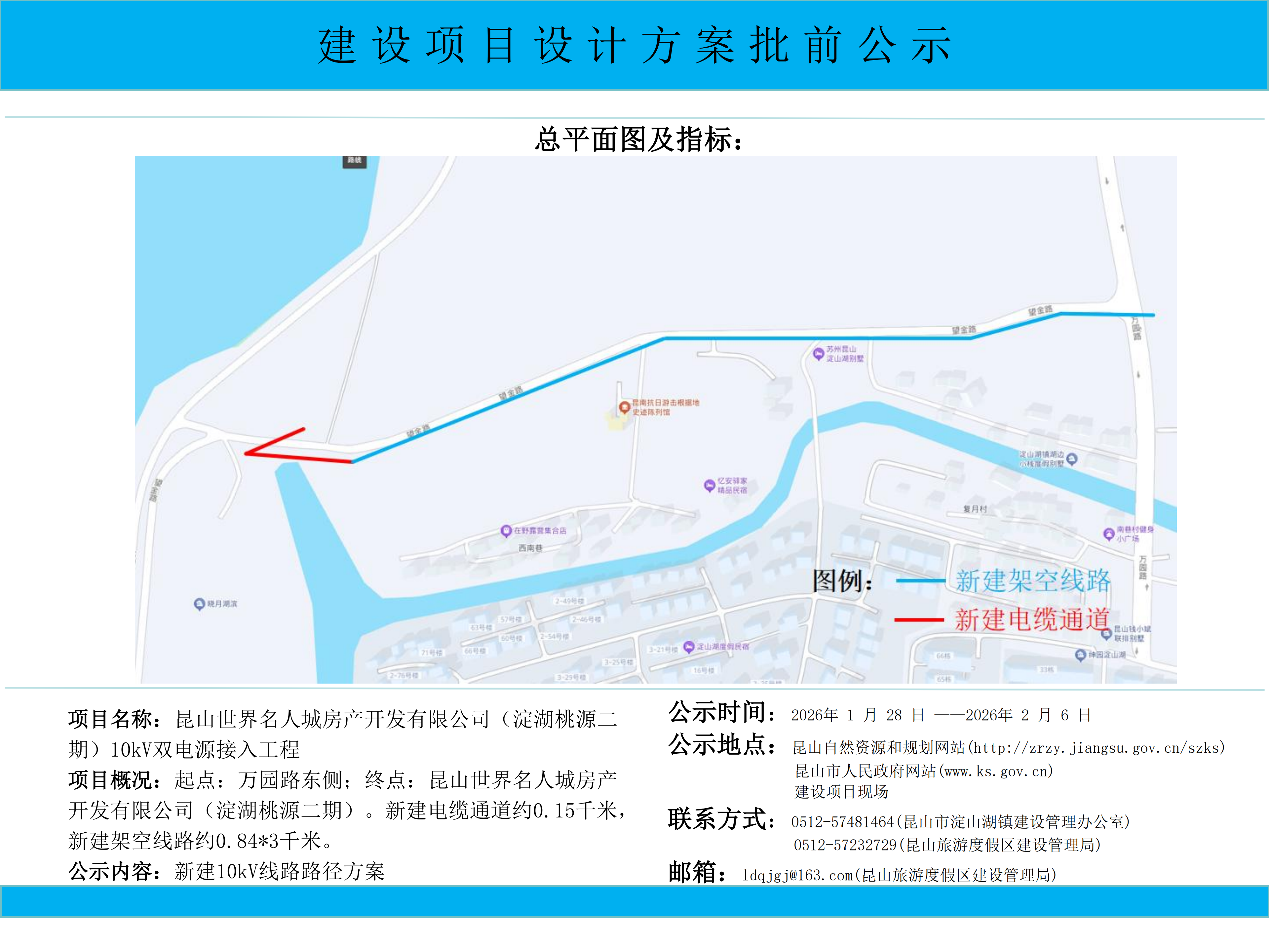 昆山世界名人城房產開發有限公司(淀湖桃源二期)10kV雙電源接入工程路徑方案批前公示