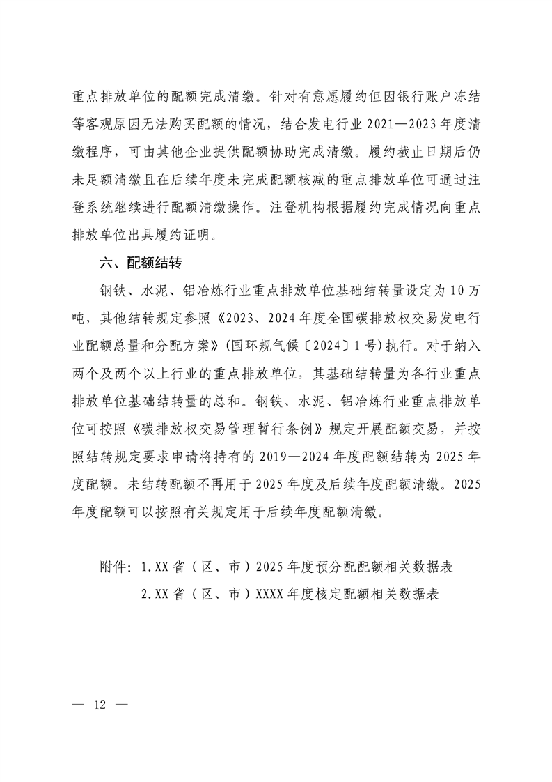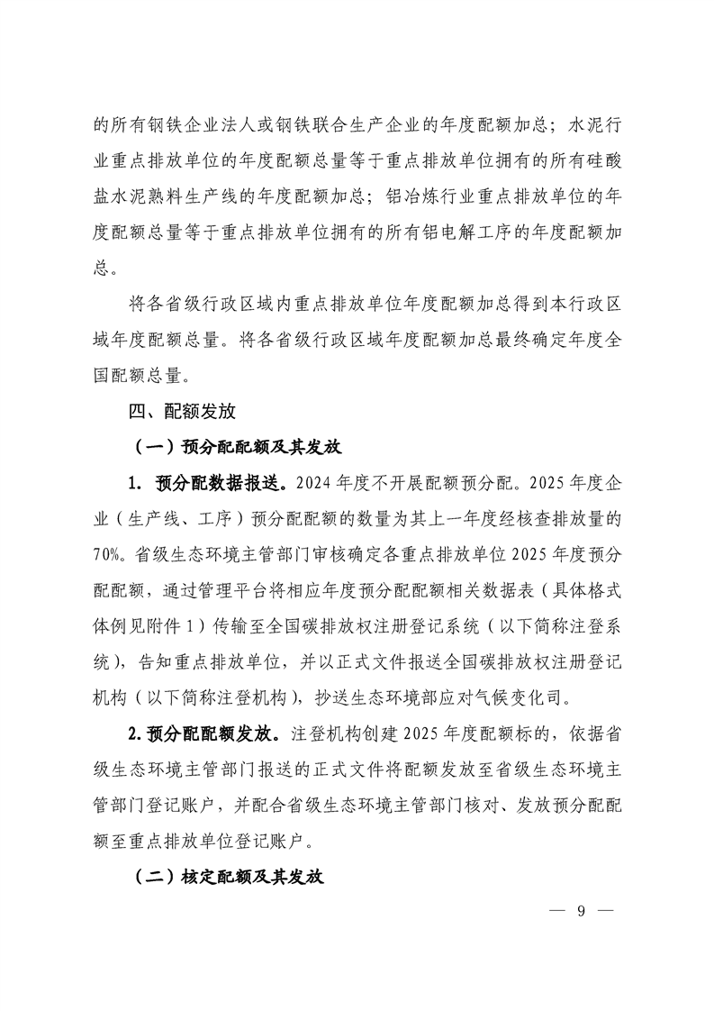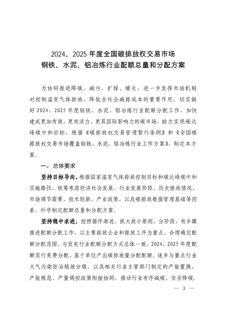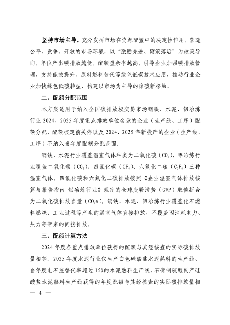 《2024、2025年度全國碳排放權交易市場鋼鐵、水泥、鋁冶煉行業配額總量和分配方案》