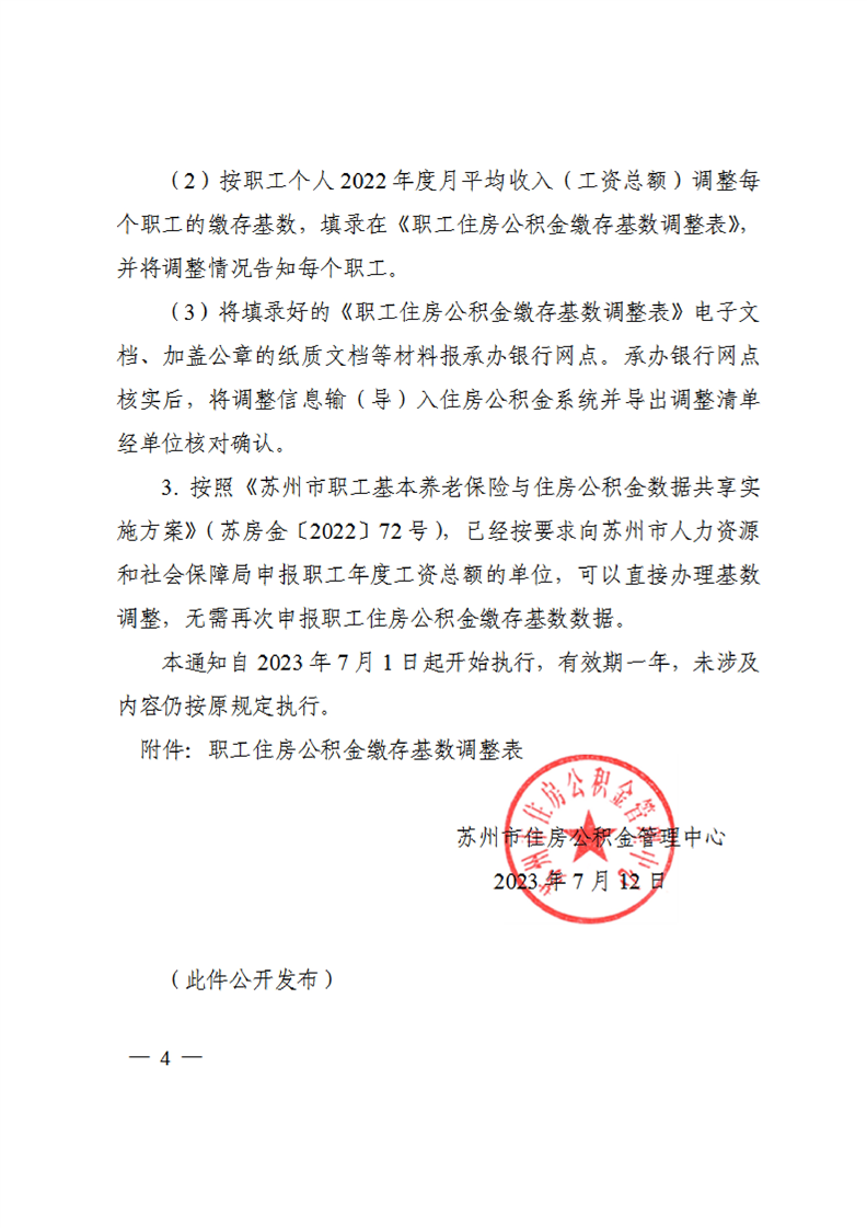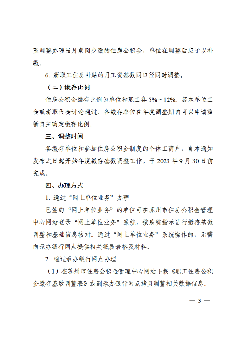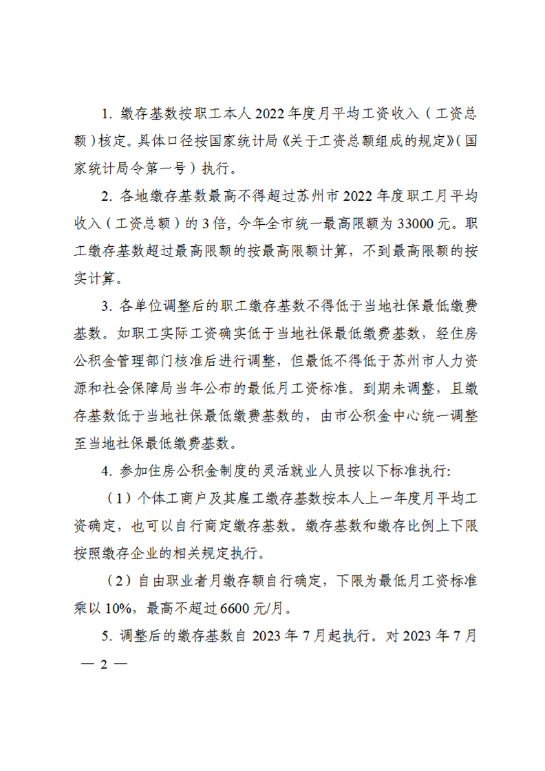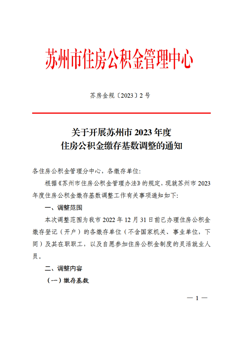 關于開展蘇州市2023年度住房公積金繳存基數調整的通知